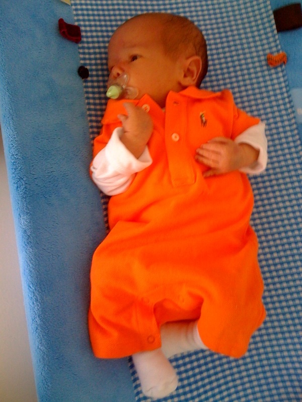 Gister hebben we voetbal gekeken bij Daphne en Yaron. Ik was er helemaal klaar voor in mijn oranje outfit (zie foto). Vond de wedstrijd alleen een beetje saai en ben dus maar gaan slapen. Ben wel heel blij dat Nederland heeft gewonnen.